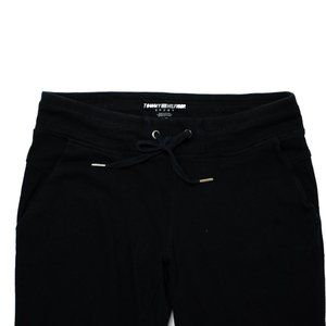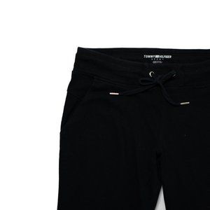 TOMMY HILFIGER SPORT Jogger Womens S/P Black Stretch Drawstring Waist Logo Pants