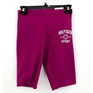 TOMMY HILFIGER SPORT Womens Bike Shorts Small Pink High Rise Foldable Waist NWT