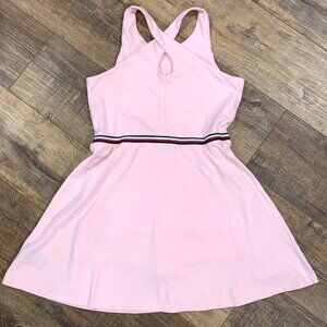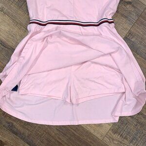 TOMMY HILFIGER STRIPE WAIST Tennis Golf Pickleball CROSS BACK TANK DRESS with built in shorts underneath!