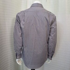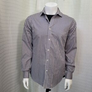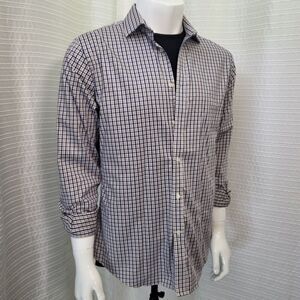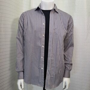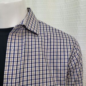 TOMMY HILFIGER Shirt Button Regular Fit Stretch Plaid Blue Tan Men's 15.5 34/35