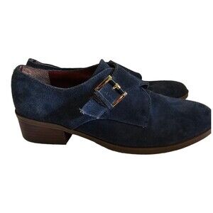 TOMMY HILFIGER Shoes blue Suede Bettina Buckle Loafers Heels Leather 8.5