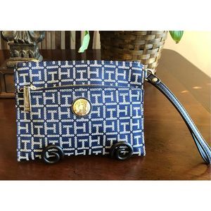 TOMMY HILFIGER - Signature Canvas Wristlet in Navy & White. SO CUTE & NWOT!