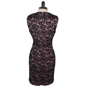 TOMMY HILFIGER Size 10 Sheath Dress Pink Black Floral Lace Sleeveless