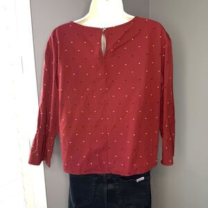 Very nice top by Tommy Hilfiger, size 4! Please see pic for flaw at hem. There's one spot where it should have a few stitches as shown.