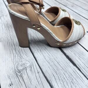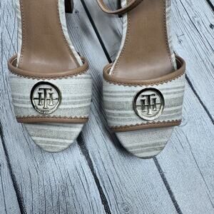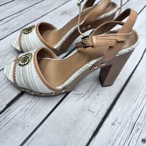 TOMMY HILFIGER Size 9 Faux Wood Linen Platform Sandals