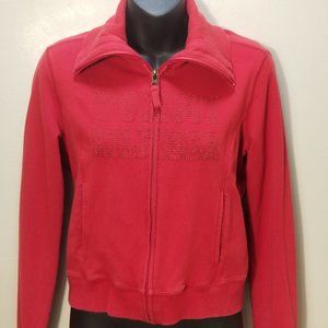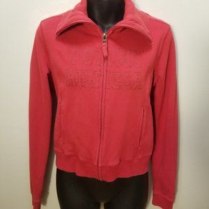 TOMMY HILFIGER Red Embroidered Size Small Embroidered Full Zip Long Sleeve