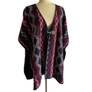 TOMMY HILFIGER Southwestern Poncho Red Blue One Size Western Aztec Tribal Print
