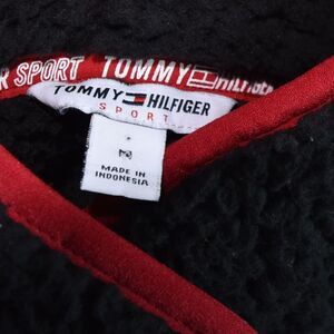 TOMMY HILFIGER Sport Womens 1/4 Snap Sherpa Sweater Medium Black Pullover Crop