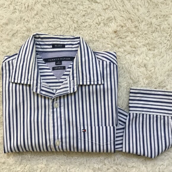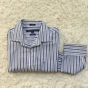 TOMMY HILFIGER Striped Classical Shirt Button Down Long Sleeve Pocket Up SP iva