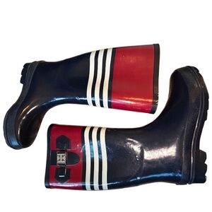 TOMMY HILFIGER TALL RUBBER RAIN BOOTS + BRUSHED NYLEX LINING, NAVY BLUE & RED, 6
