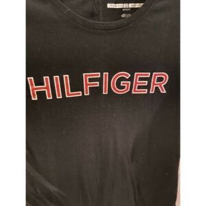 TOMMY HILFIGER T-SHIRT Womens Sz M BLACK spell out logo Tee Top short sleeve Y2K