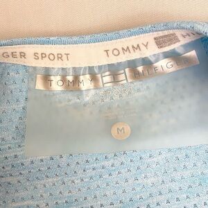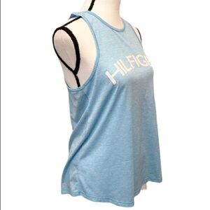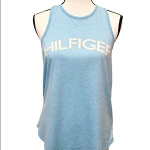 TOMMY HILFIGER Preowned Tank Top Spellout Logo Perforated Athletic. Good condition. Underarm to underarm measures approx 17”. Blue Size Medium. Some stretch. You will look sporty in this spellout tank top - perfect for athletic or around town! SH 186
