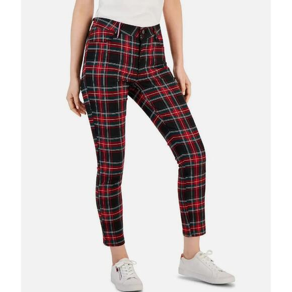 TOMMY HILFIGER Tribeca Skinny Ankle Pants in Red/Green Plaid Patterned