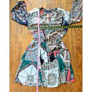 TOMMY HILFIGER URBAN FOLKLORE DRESS TASSEL-TIE BLOUSON BOHO ART DECO SZ SMALL