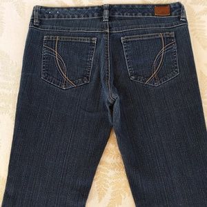 These Vintage Tommy Jeans are Boot-Cut jeans and have embroidery on back pockets. They were made in May/2006. RN #77806. Style #FAM-WMG 0377594. They're made of 84% Cotton/15% Polyester/1% Spandex. Label reads Size 7. True measurements are; Waist: 30 in. / Inseam: 31 in. / Rise: 7 1/2 in. / Hips: 18 in. / .knees: 9 in. / Cuffs: 7 in. There is a very light, hard to see spot on the right knee, (see pic #7 & 8). Priced accordingly. Otherwise Excellent Used Condition. Make me an OFFER!!!