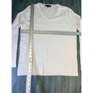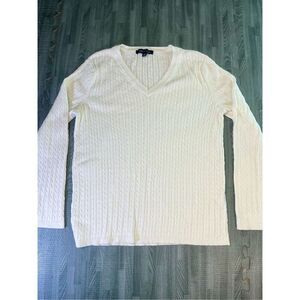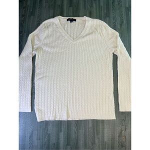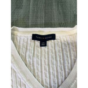 TOMMY HILFIGER VNECK COTTON cable knit SWEATER White Size LARGE Women’s