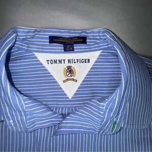 TOMMY HILFIGER Vintage Blue & White Striped Button Down Long Sleeve Dress Shirt