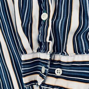 TOMMY HILFIGER Vintage Blue White Vertical Stripe Button Down Shirt Lion Logo XL