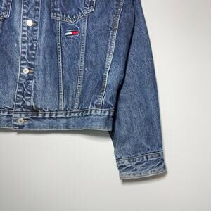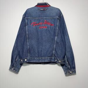TOMMY HILFIGER Vintage Embroidered Logo Denim Jacket Size XL Extra large