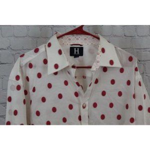 HILFIGER WHITE/PINK POLKA DOT BUTTON-UP SHIRT XL