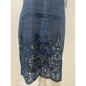 TOMMY HILFIGER WOMEN'S INDIGO Embroidery Lace Hem SLEEVELESS SHEATH DRESS SZ 4