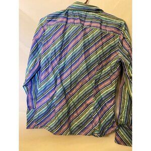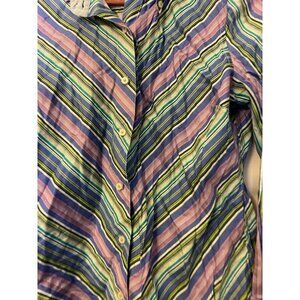 TOMMY HILFIGER WOMENS SIZE LARGE PURPLE STRIPE BUTTON UP SHIRT TOP BLOUSE