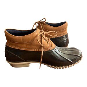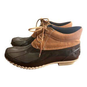 TOMMY HILFIGER WOMEN'S SZ 7 ANKLE DUCK BOOTS CHOCOLATE BROWN LEATHER LACE UP EUC