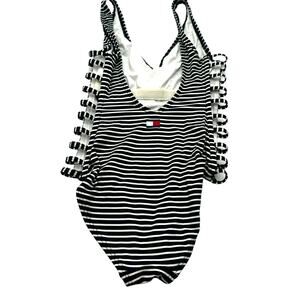 TOMMY HILFIGER | Women's 6 Blue White Stripe Cut Out Sides One Piece Swimsuit