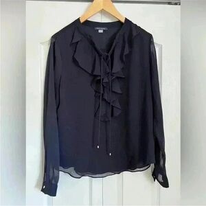 TOMMY HILFIGER Women's Classic Long Sleeve Ruffle Front Blouse Blouse - Midnight
