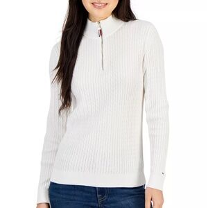 TOMMY HILFIGER Women's Cotton Mock Turtleneck Cable-Knit Sweater, size M