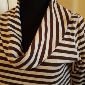 TOMMY HILFIGER Women's Cowl Neck Long Sleeve Shirt Brown/Beige Stripes Size Med