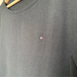 TOMMY HILFIGER Womens L Pullover Tee Short Sleeve Black Round Neck Red Logo