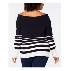 TOMMY HILFIGER Womens Long Sleeve Off Shoulder Sweater In Navy And White
