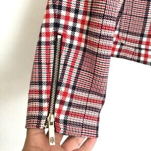 TOMMY HILFIGER Women's RED BLUE WHITE HOUNDSTOOTH Plaid Zip-Up Jacket Sz 4