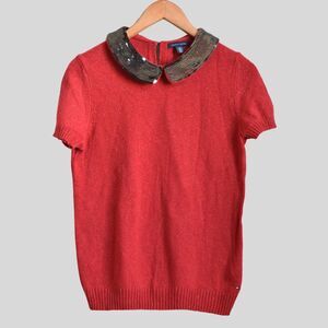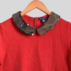 TOMMY HILFIGER Women's Sequin Collar Red Sweater Size M