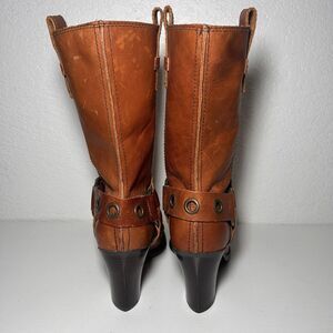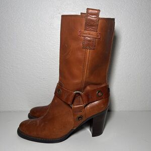 TOMMY HILFIGER Women’s Size 8.5 Reine Brown Leather Heeled Boots Harness Pull-On. Condition is Pre-owned. Shipped with Economy Shipping.