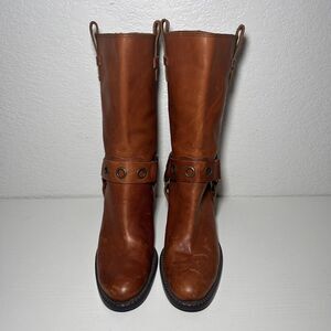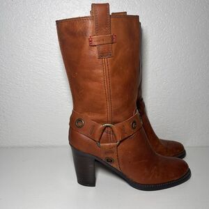 TOMMY HILFIGER Women’s Size 8.5 Reine Brown Leather Heeled Boots Harness Pull-On