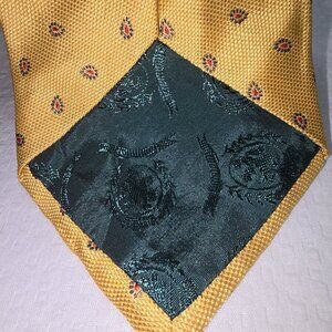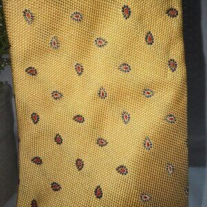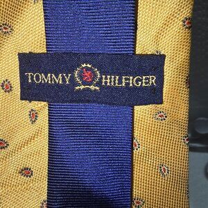 TOMMY HILFIGER YELLOW TIE WITH RED TEARDROP DESIGN IMPORTED SILK FABRIC MENS