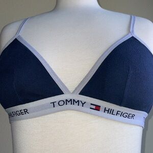 TOMMY HILFIGER navy bra with logo band adjustable straps in women’s size medium