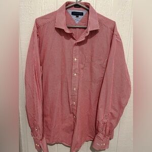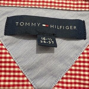 TOMMY HILFIGER size 16.5 36-37 long sleeve button up shirt red white small check
