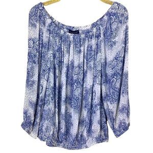 TOMMY HILFIGER Blue Paisley Long Sleeve Off Shoulder Top Size Medium