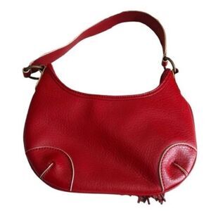 TOMMY HILFIGER Handbag Studded Embroidered Leather Strap Tasseled Red