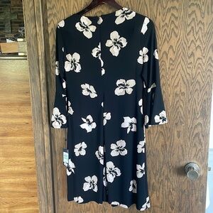 Sweet florals adorn this easy to wear shift dress by Tommy Hilfiger, this petite dress flows through the body mimicking the flow of the gorgeous bell sleeve frame.