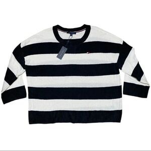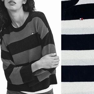 TOMMY HILFIGER RUGBY STRIPE CHENILLE SWEATER WINTER LAYER COMFY SOFT LOUNGE