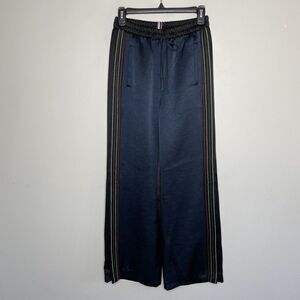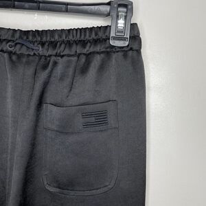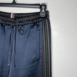TOMMY HILFIGER Womens Black Satin Side-Stripe Athletic Pants Ankle-Zips Sz: 2