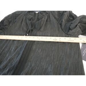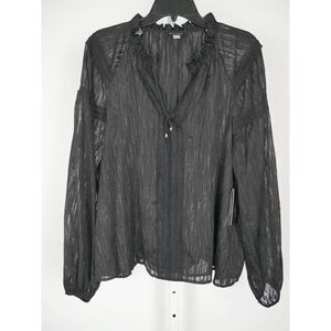 TOMMY HILFIGER Women's Black Textured Split-Neck Long Sleeve Top L