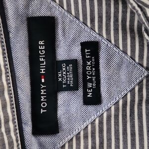 Gray and white stripes Tommy Hilfiger New York fit short sleeve casual button-down shirt. Size XXL. 100% Cotton. In great condition.