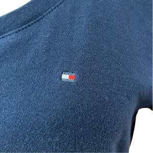 Tommy Hilfiger blue T-shirt with embroidered logo. 100% cotton. Short sleeve with crewneck. This shirt is in good used condition. Women’s size large.
