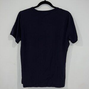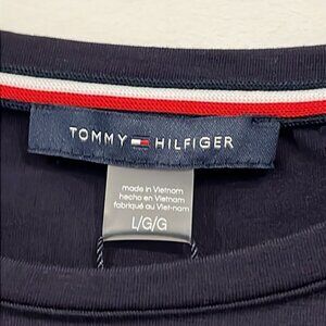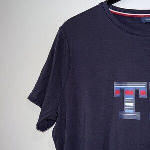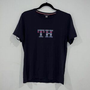 Tommy Hilfiger Navy Blue Striped Logo Graphic Stretch Tees size Large