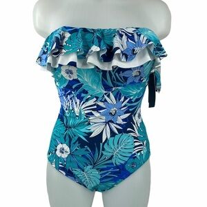 TOMMY Hilfiger Ruffled Bandeau One Piece Swimsuit